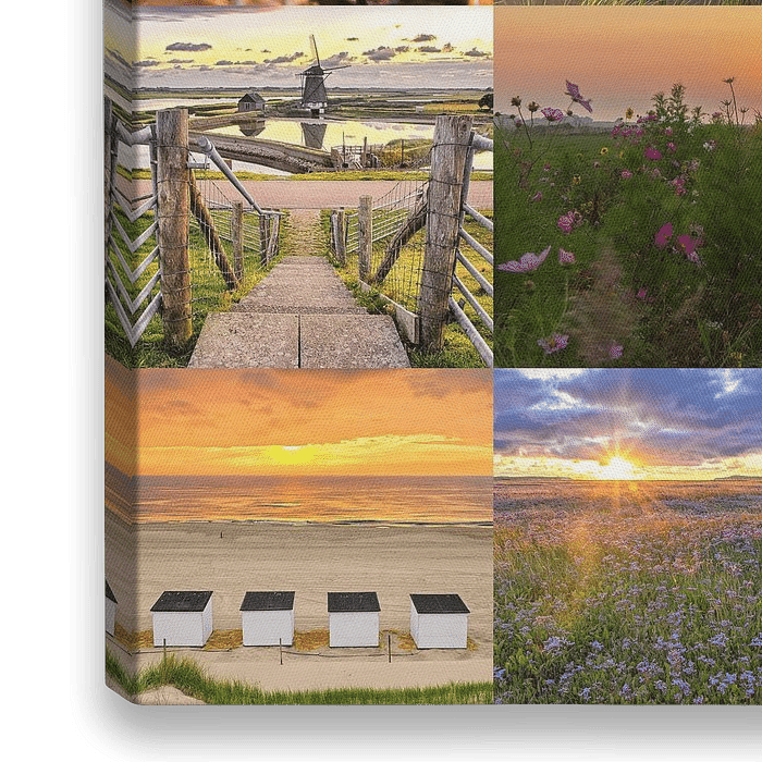 Een collage met de mooiste plekjes op Texel. Zon, zee, strand, vuurtoren, uil, lammetjes, alles komt aan bod! Met dit kunstwerk haal je al het moois van Texel in huis!