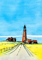 Over ‘Texel | Eierland Vuurtoren vanaf de Vuurtorenweg | Handgemaakte Aquarel Schilderij’ van WatercolorWall