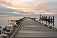 Zonsopkomst bij het haventje van Sil. Een mooi plekje aan de wad kant van Texel. Een mooie steiger in de Waddenzee.