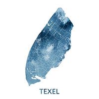 Met deze frisse Oceaanblauwe landkaart van Texel in aquarel, geniet je elke dag van dit mooie Waddeneiland. Klik op de kaart om een close-up te bekijken.
