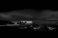 Op een hele donkere stormachtige avond op Texel. Het paviljoen Faro 2 ligt er verlaten bij en wacht op de eerste herfststromen die Texel ieder jaar teisteren. Het licht schijn t nog net op het paviljoen en de naastgelegen duinen.