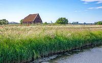 Mooie groene bermen, veel veldbloemen en een mooie blauwe lucht. je ziet het meest gefotografeerde kippenskuurtje van Texel met in de verte het witte kerkje van Den Hoorn.