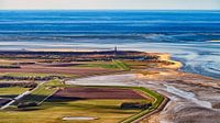 Overzicht langs de wadkant van het eiland Texel tussen het dorpje De Cocksdorp en de vuurtoren