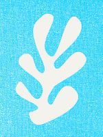Geïnspireerd door Henri Matisse, wil ik u graag een prachtig natuur blad schilderij in wit en aqua azuurblauwe blad kunst op textiel stof achtergrond.