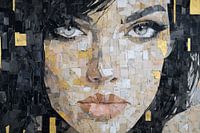 Een abstract portret met rijke texturen en gelaagde vormen. De compositie geeft diepte en karakter aan het werk. Ideaal voor een modern en artistiek interieur.