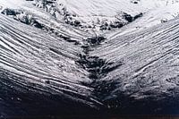Deze indrukwekkende foto legt de krachtige lijnen en texturen vast van een met sneeuw bedekt berglandschap. De gelaagde strepen van sneeuw en gesteente creëren een bijna grafisch patroon, dat zowel abstract als natuurlijk aanvoelt. De donkere kloven en scherpe contrasten benadrukken de ruige schoonheid van het landschap. Dit kunstwerk is een visueel spektakel dat perfect past in een moderne of minimalistische inrichting en een ode brengt aan de kracht van de natuur.