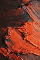 Dit krachtige kunstwerk toont een close-up van dikke, expressieve verflagen in vurige rood- en bruintinten, met zichtbare penseelstreken die structuur en beweging benadrukken. De intense textuur en kleurverdeling geven het werk een tastbare energie, alsof het pigment nog nat is en elk gebaar van de kunstenaar voelbaar blijft. Deze…