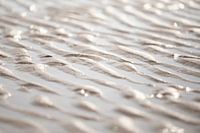 Rustgevende foto van het zand op het strand die in een golvend patroon hebben. Hierdoor blijft het water uit de zee tussen de ribbels van het zand liggen. De foto is gemaakt tijdens een vakantie in België met tegenlicht.