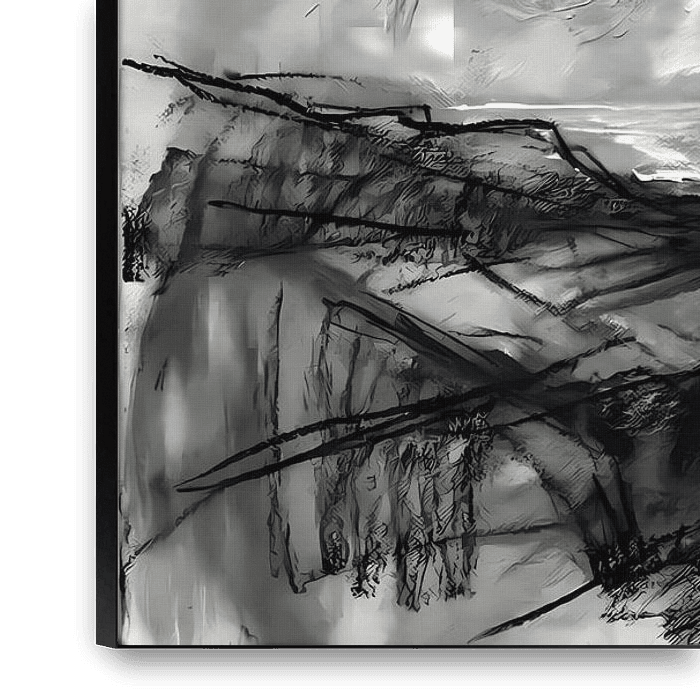 Een krachtig en sfeervol digitaal kunstwerk waarin de onstuimige stijl van J.M.W. Turner samensmelt met hedendaagse, abstracte houtskoolkunst.