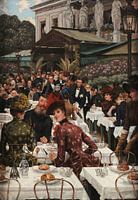 Op de dag voor de opening van de jaarlijkse Salon-tentoonstelling in Frankrijk brachten kunstenaars een laatste laag vernis aan op hun schilderijen en gingen ze naar een café om het te vieren. Het schilderij van James Tissot verbeeldt deze rituele bijeenkomst op het terras van het restaurant Ledoyen, een Parijs instituut dat ook nu nog bestaat. Het levendige tafereel bevat portretten van verschillende bekende kunstenaars, zoals de beeldhouwer Auguste Rodin, wiens bebaarde, bespectaculaire gezicht in het midden van het schilderij staat. Maar meer dan een portret van de kunstenaars richt Tissots werk zich op de stijlvolle, stedelijke vrouwen die aanwezig zijn - de echtgenotes van de kunstenaars.