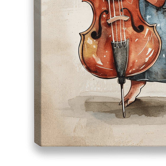 Drie vrolijke varkens met strijkinstrumenten maken muziek.