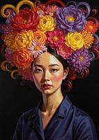Een prachtig portret van een Aziatische vrouw met bloemen in het haar.