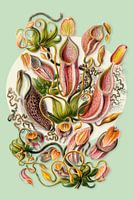 Een collage van vleesetende planten op een zacht - mintgroene achtergrond. Ik heb dankbaar gebruik gemaakt van deze afbeelding, die ik vond op Internet en naar eigen goeddunken mocht gebruiken. De afbeelding was echter in erbarmelijke staat en stond op een niet zo fraaie achtergrond. Ik ben uren bezig geweest om de afbeelding op te knappen en digitaal te restaureren, opdat u, de koper, deze schitterende planten zonder gene aan de muur kunt hangen :-)