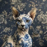 Koop dit moderne kunstwerk The Cat With The Delft Blue Tattoo van Studio Ypie op canvas, aluminium dibond, (ingelijste) fotoprint, behang en ArtFrame, op maat geprint in Fine-Art kwaliteit.