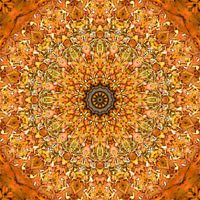 Een kaleidoscopisch kunstwerk in tinten van rood, bruin en oranje, gebaseerd op een foto van jonge bladeren van een esdoorn in de lente. De "early days", de eerste dagen van een nieuwe levenscyclus, inderdaad. Door die foto in twaalf transparante lagen over elkaar te leggen, telkens dertig graden geroteerd, ontstond dit beeld.