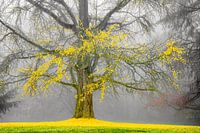 Beautiful big tree loosing the last yellow leaves