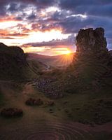 Zonsondergang bij Fairy Glen op het Isle of Skye in Schotland