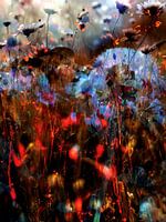 De beelden uit de serie The Fields laat een vreemde natuur zien, een veld met ondefinieerbare bloemen- en plantensoorten in bloei, maar ook in verval. Beiden zijn van een bijzondere schoonheid en die twee momenten probeer ik te vangen in één beeld.
