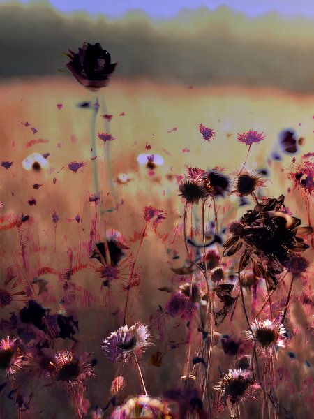 De beelden uit de serie The Fields laat een vreemde natuur zien, een veld met ondefinieerbare bloemen- en plantensoorten in bloei, maar ook in verval. Beiden zijn van een bijzondere schoonheid en die twee momenten probeer ik te vangen in één beeld.
