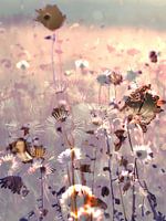 De beelden uit de serie The Fields laat een vreemde natuur zien, een veld met ondefinieerbare bloemen- en plantensoorten in bloei, maar ook in verval. Beiden zijn van een bijzondere schoonheid en die twee momenten probeer ik te vangen in één beeld.