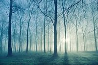 Ik ben niet zo'n fan van de aanblik van deze fantasieloos aangeplante bossen maar zo met een beetje mist en een opkomend zonnetje veranderd alles en krijgt het een lekker sprookjes achtig sfeertje.