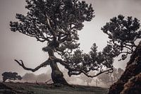Donkere moody scène in het nevelwoud van Fanal. Deze oeroude laurier lijkt bijna menselijk en houdt de wacht aan de rand van het oerbos. De gelijkenis met een Ent uit de Tolien romans is sprekend, vind je niet?