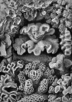 Deze prachtige tekening van koraal vond ik op Internet en mocht ik naar eigen goeddunken gebruiken. De afbeelding verkeerde in erbarmelijke staat, dus heb ik deze eerst digitaal gerestaureerd maar er daarbij wél zorg voor gedragen dat het zijn vintage, enigszins verweerde, uitstraling bleef behouden. Tot slot heb ik er een vis in…