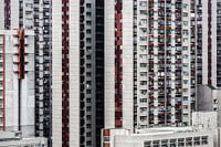Een aantal flatgebouwen in Yuen Long, Hong Kong