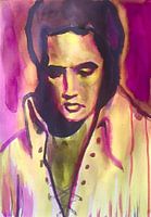 Modern portret in popart stijl van muziekicoon Elvis Presley. Gemaakt met ecoline en Oostindische inkt op A3 papier.
