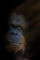 Sfeerfoto van een orang-oetan koning met Rembrandt licht
