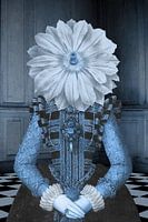 Surrealistisch werk in Delfts Blauwe tinten, in de stijl van de Oude Meesters. Het is een collage van diverse afbeeldingen. Kunst met een knipoog ;-)