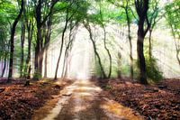 De zonnestralen die typerend zijn voor een ochtend in het Speulderbos