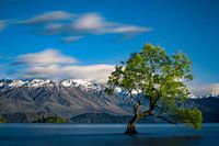The Lonely Tree of Wanaka - de beroemde eenzame boom in het water van het meer van Wanaka - in het Zuidereiland van Nieuw-Zeeland.