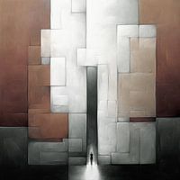 Surrealistische symbolische illustratie in bruin en grijs tinten in een kubistische stijl.