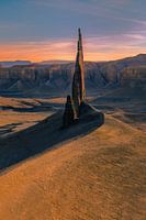 De naald bij zonsondergang, een verborgen schat in het Amerikaanse zuidwesten, gelegen in de Badlands in Utah, Verenigde Staten.