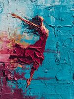 De vrouw op dit schilderij springt niet weg van iets. Zij…