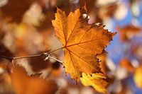Een herfstblad met tegenlicht.