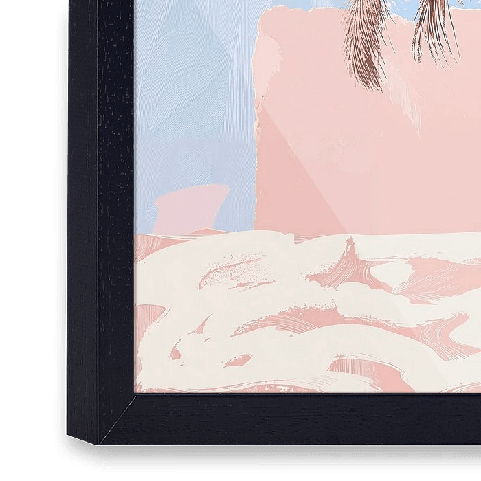 The Palm Life is een serene illustratie van een palmboom, weergegeven in warme terra tinten. De palmboom staat centraal tegen een lichtblauwe achtergrond, waardoor de aardse kleuren nog meer opvallen. De vloer bestaat uit een subtiele mix van roze en crème wit tinten, wat een zacht en modern contrast creëert. Een klein roze muurtje vult…