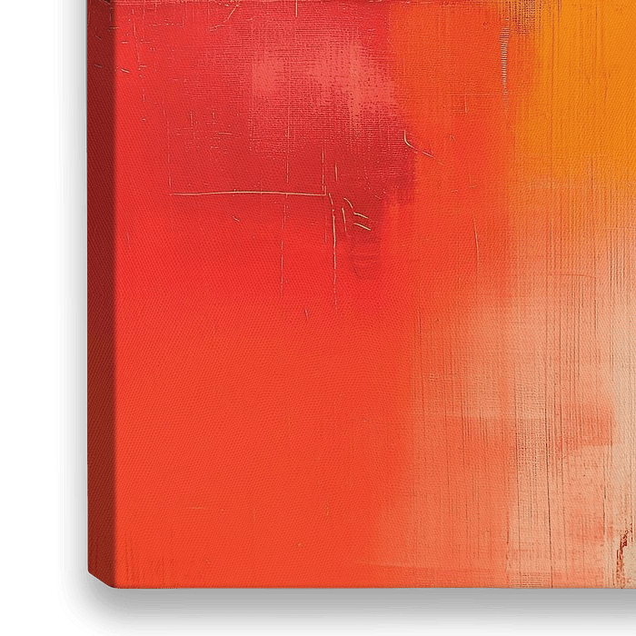 Een minimalistisch abstract kunstwerk met grote, opvallende kleurblokken die overgaan in kleine penseelstreken van wit. De compositie is eenvoudig maar krachtig en roept gevoelens van passie en intensiteit op.