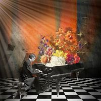 Een pianist speelt de mooiste bloemen uit zijn piano.