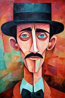 Abstract portret van inspecteur Jacques Clouseau, oftewel de Pink Panther.