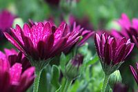 Close up foto van paarse margrieten met een groene achtergrond. Deze foto is ideaal voor een tuinposter /tuinposters.