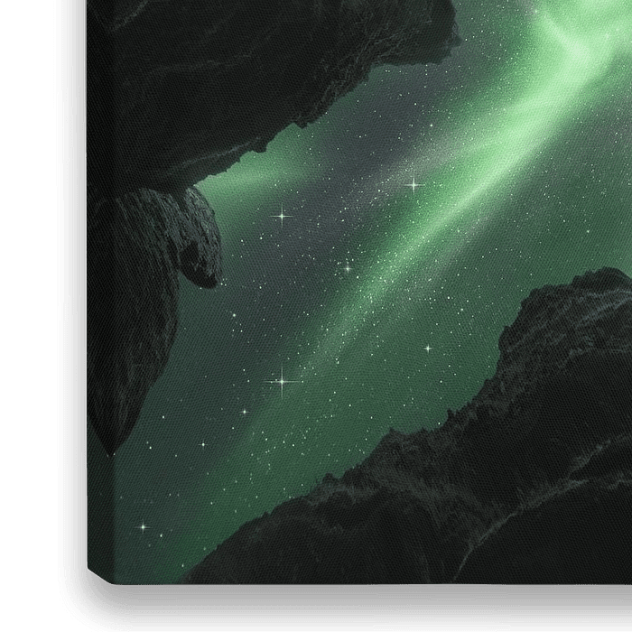 Spectaculair noorderlicht vanuit een kloof zonder naam in Zuid-IJsland. De kloof lijkt de vorm van een vogel te hebben.
