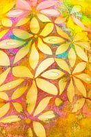 Zwevende bloemen op een achtergrond die veel structuur en kleur heeft.