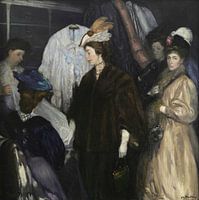 Dit is een groot vierkant olieverfschilderij op doek. Het is een olieverf op doek "genre" schilderij van de New Yorkse middenklasse: het illustreert goed geklede vrouwen die winkelen voor kleding. e drie belangrijkste figuren zijn portretten: Edith Glackens staat in het midden, haar metgezel rechts is Mrs. Florence Shinn, en de vrouw links met haar rug naar de kijker is Lillian E. Travis, bekend om haar kastanjebruine haar.