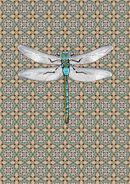 De libelle staat symbool voor lichtheid, vrijheid en verandering. Met haar sierlijke vleugels zweeft ze moeiteloos door de lucht en herinnert ze ons eraan dat schoonheid vaak in het vluchtige moment te vinden is. Tegen een grafische achtergrond komt haar elegantie nog sterker naar voren: een harmonie van natuur en patroon. Dit kunstwerk…