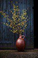 Bloemstilleven, lente takken in oude vaas. De schoonheid van eenvoud.