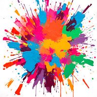 Abstract kunstwerk dat tot leven komt met zijn dynamische spatten van kleur. Het is alsof een orkest van tinten en tonen voor je ogen speelt, een choreografie van beweging, passie en creativiteit.