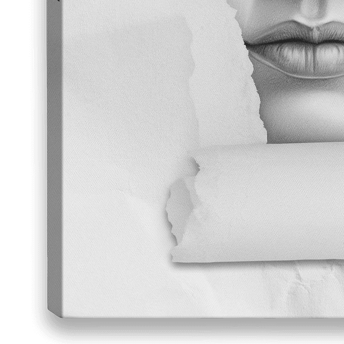 Een uniek, digitaal vervaardigd portret, een illustratie in zwart-wit, met (verscheurd) papier-effect.