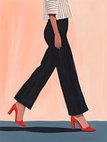 In dit kunstwerk wordt een wandelende vrouw tot leven gebracht in een mix van sprekende kleuren en tinten, die prachtig samensmelten en een moderne oproepen.